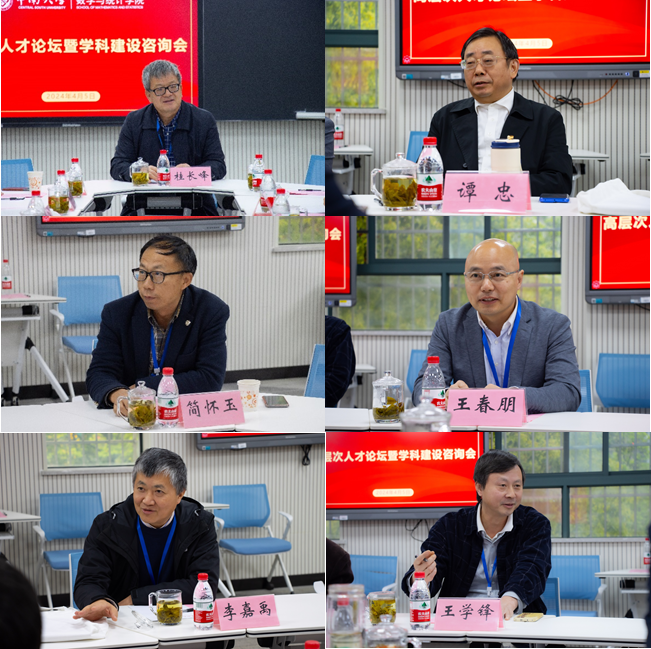 专家咨询环节,国家特聘专家、澳门大学数学系系主任桂长峰教授,清华大学简怀玉教授,国家杰青、中国科学技术大学李嘉禹教授,国家级教学名师、厦门大学深圳研究院院长谭忠教授,国家杰青、吉林大学数学院党委书记王春朋教授,国家特聘专家、香港中文大学(深圳)研究生院院长王学锋教授,上海交通大学研究生院院长王亚光教授,国家级教学名师、南京大学杨孝平教授,教育部教指委委员、广东省数学会理事长姚正安教授,国家杰青、华南理工大学数学院学术院长朱长江教授等专家纷纷给出了自己的建议。