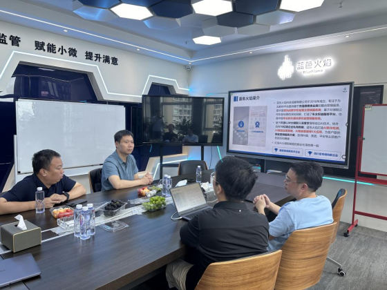 会后,胡玉玺带领罗跃逸、王孟正走访了校友企业蓝色火焰科技成都有限公司,在公司总经理吴松江校友的陪同下参观了企业总部。吴松江首先对胡玉玺一行表示热烈欢迎,就公司创立背景、主营业务、发展规划和行业前景等做了详细的介绍。胡玉玺对校友们热情接待表示感谢,并介绍了学院在学科建设、人才培养等方面取得的进步,期待校友们未来和学院在科学研究、成果转化、就业服务等方面加强合作,为数统学子拓宽实习和就业岗位,为学院的发展建言献策。