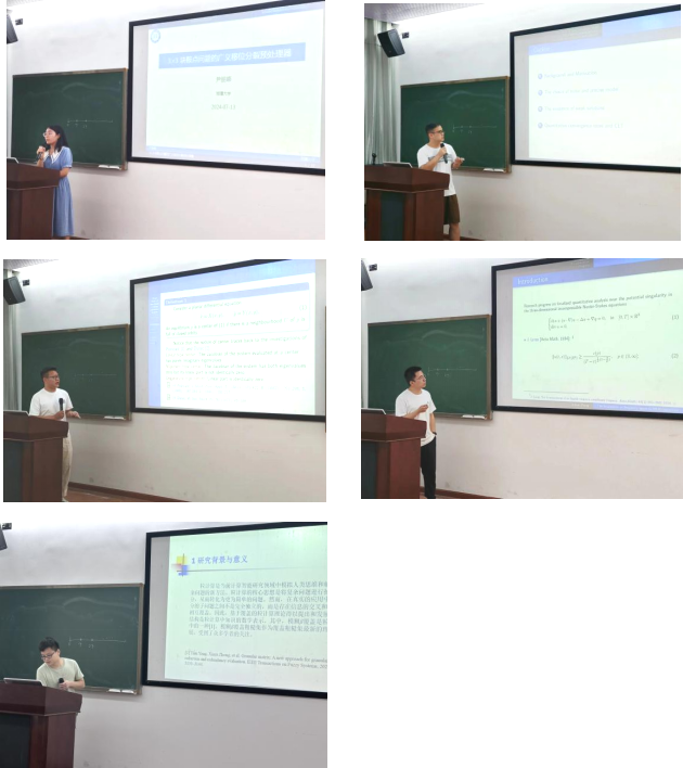 在下半场,5位研究生分别分享了随机无穷维动力系统、平面微分方程、粗糙集等领域的发展现状与自身的研究成果。