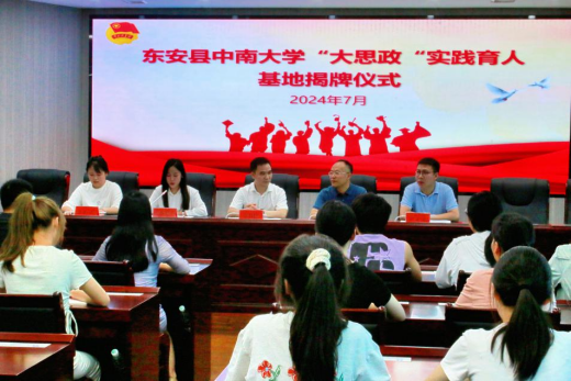 7月19日上午,东安县与BB贝博艾弗森官网“大思政”实践育人基地揭牌仪式在东安县行政中心举办。BB贝博艾弗森官网党委副书记杨雪宾与中共东安县委副书记、统战部部长李月红共同为实践育人基地揭牌。东安团县委全体干部职工、学院辅导员王孟正、谢昕蕊、“乡中有数”暑期支教团学生参加活动。