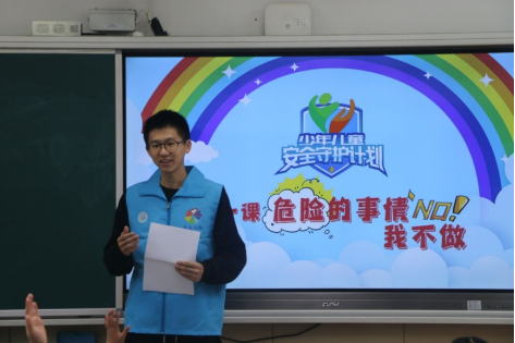 本次活动由“西格玛”志愿服务队成员王子涵、刘罡况、张铭轩、朱雨佳同学共同组织。课堂以绘本《危险的事情我不做》为切入点,开启了一场趣味十足的“安全大冒险”。主讲人刘罡况同学通过播放几段儿童危险行为的视频,为孩子们展示了生活中容易被忽视的安全隐患。视频中情景生动,宛如一面镜子,让孩子们直观感受到危险行为的潜在后果。