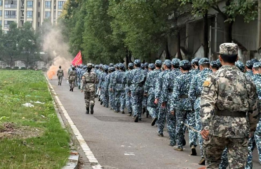 队伍自南校体育场准时出发,沿途设置“防空袭”突发情况演练节点,教官口令一出,百余名新生数秒内全部完成抱头、蹲下、静默动作,达到军训大纲优秀标准。尽管距离较远、体力消耗较大,全体新生仍精神饱满,无一人掉队。