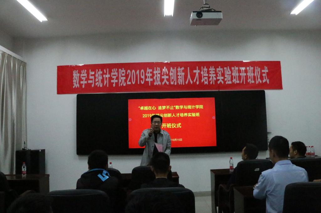 2019年10月15日8:30,BB贝博艾弗森官网于数理楼145学术报告厅举办“卓越在心,追梦不止”BB贝博艾弗森官网2019年创新拔尖人才培养实验班开班仪式。院长焦勇教授、院党委安少波副书记、班导师徐宇锋老师、郭铁信教授、刘伟俊教授、19级辅导员王孟正老师以及T1901班全体同学参加了本次仪式。仪式由安少波副书记主持。