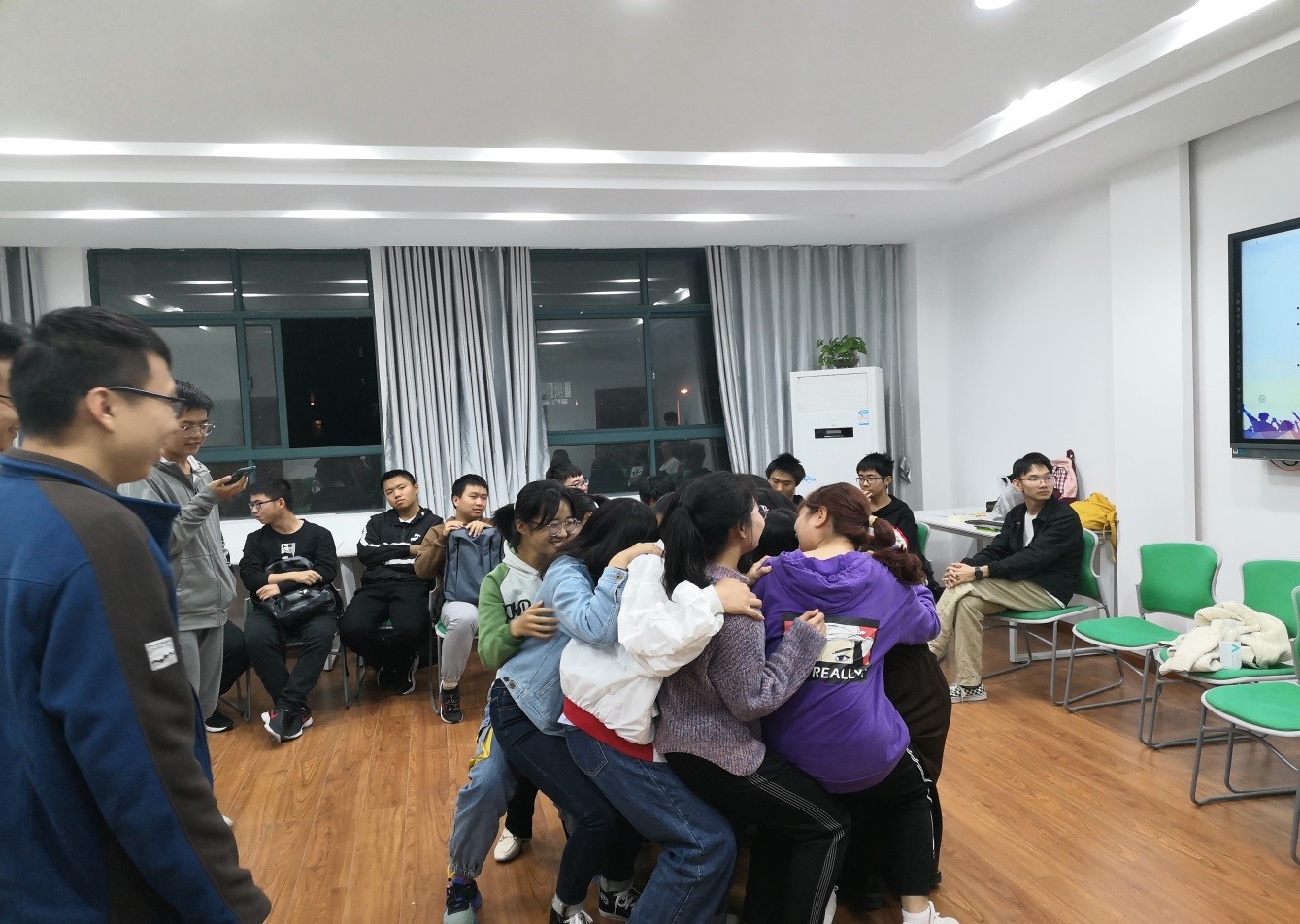 为了丰富同学们的精神世界和大学生活,BB贝博艾弗森官网1907班于11月5日晚上6点在数理楼357开展了团体辅导。19级辅导员王孟正老师与同学们进行了亲切友好的交流,并开展了一系列有趣的小游戏。
