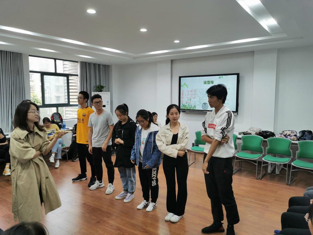 第一个环节为游戏“滚雪球”:以小组为单位,每一位同学需要用一句话介绍前面的同学的籍贯与爱好并同时介绍自己,用时最长的一组需接受表演节目的惩罚。(“败者组”派出代表黄项龙献出一曲《苦瓜》,曲终,掌声雷动。)