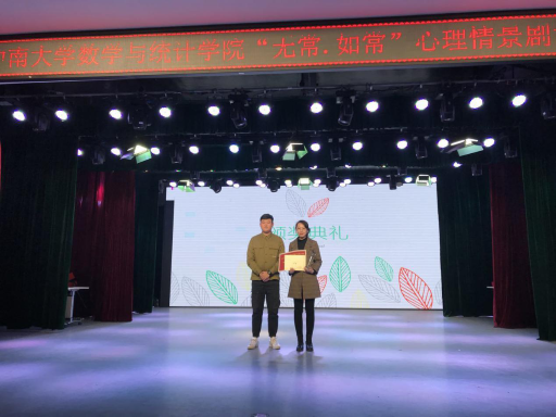 围绕“无常,如常”这一主题,各班剧组都带来了意义深刻、精彩纷呈的演出。从新生如何融入学校,到大学生如何克服创业路途中的困难,各班的选题都紧紧围绕着大赛主旨;不论是友情、爱情还是亲情,各种美好真挚的情感在大赛中都有所体现;小到日常矛盾的处理,大到对抑郁症患者的关怀,每一个角度都体现出数统院学子强烈的社会责任感和浓浓的人文关怀。大赛中还穿插了许多趣味小游戏。小游戏既让参与者乐在其中,也让台下的观众笑个不停,使现场的气氛更加活跃。在工作人员和剧组人员的共同努力下,大赛圆满结束。最终,研究生剧组凭借优质的剧本和精湛的演技折桂,2004、2007班剧组获得二等奖,2008、2002及2001班剧组获得三等奖。