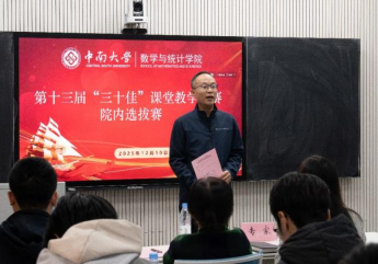 为进一步引导教师潜心育人,提升教师教学水平,2025年12月10日14时30分BB贝博艾弗森官网第十三届“三十佳”课堂教学竞赛院内选拔赛在数理楼245教室正式拉开帷幕。湖南大学彭豪副教授(第五届全国高校青年教师教学竞赛理科组一等奖)、BB贝博艾弗森官网刘再明教授、秦毅红教授、王小玲教授、谢斌教授五位校内外专家应邀担任评委,学院党委副书记杨雪宾主持。经报名选拔,共8名青年教师同台竞技。